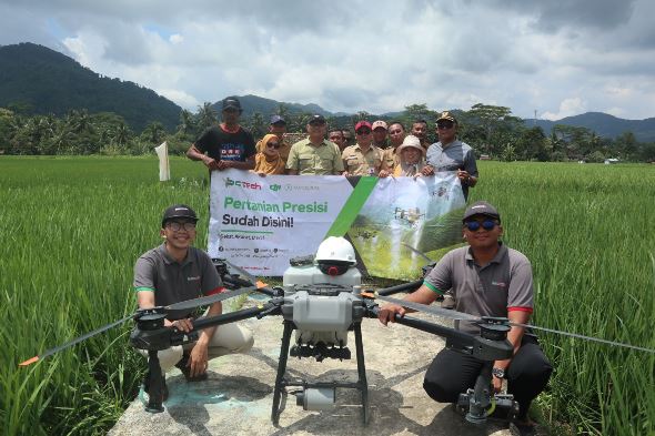 INILAHKUNINGAN- Brigade Proteksi Tanaman Dinas Ketahanan Pangan dan Pertanian (Diskatan) Kabupaten Kuningan menerapkan teknologi drone dalam