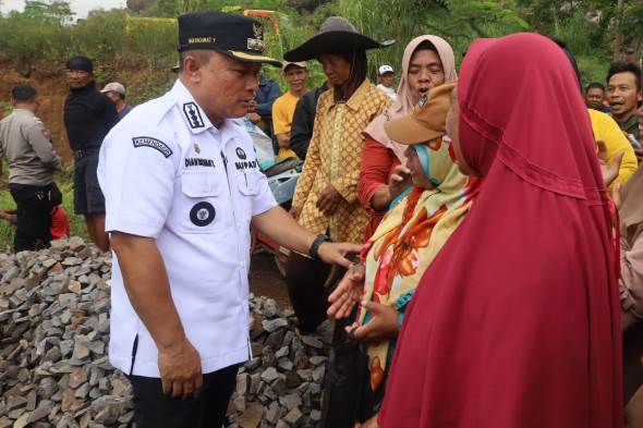 INILAHKUNINGAN- Hujan intensitas tinggi, di Jalan Panawuan-Indapatra, Kabupaten Kuningan, tepat di Desa Bojong RT 14/04 Dusun Pahing, Kecamatan