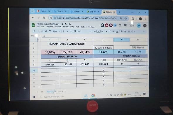 Hasil suara masuk dalam quick count CIMM juga cukup tinggi. Ya  itu mencapai 43,27% atau 385 ribu suara dari 1.334 TPS masuk, pada Rabu (27/11/2024) pukul 18.30.