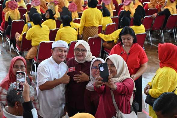 “Dari yang masaknya biasa saja, insya allah akan menjadi enak. Dari masakannya yang sudah enak, akan tambah nikmat, Ibu-ibu PKK tentu akan semakin di sayang suami,” gurau Bupati Dian./tat azhari