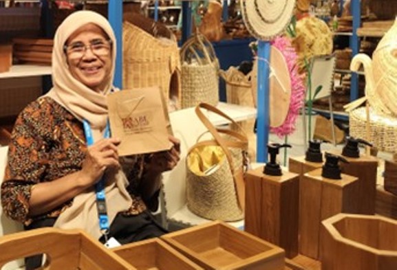 INILAHKUNINGAN- Jakarta– Memanfaatkan limbah kayu agar tidak terbuang percuma, Anita Egyanti, pemilik usaha Abe Kreasi dari Kota Semarang, berhasil mengubah bahan sisa menjadi produk kerajinan tangan. Karyanya, bahkan memiliki nilai ekonomis dan multifungsi. Karya UMKM tersebut, dipamer dalam BRI UMKM Expo (RT) Tahun 2025, di Ice BSD Tangerang.