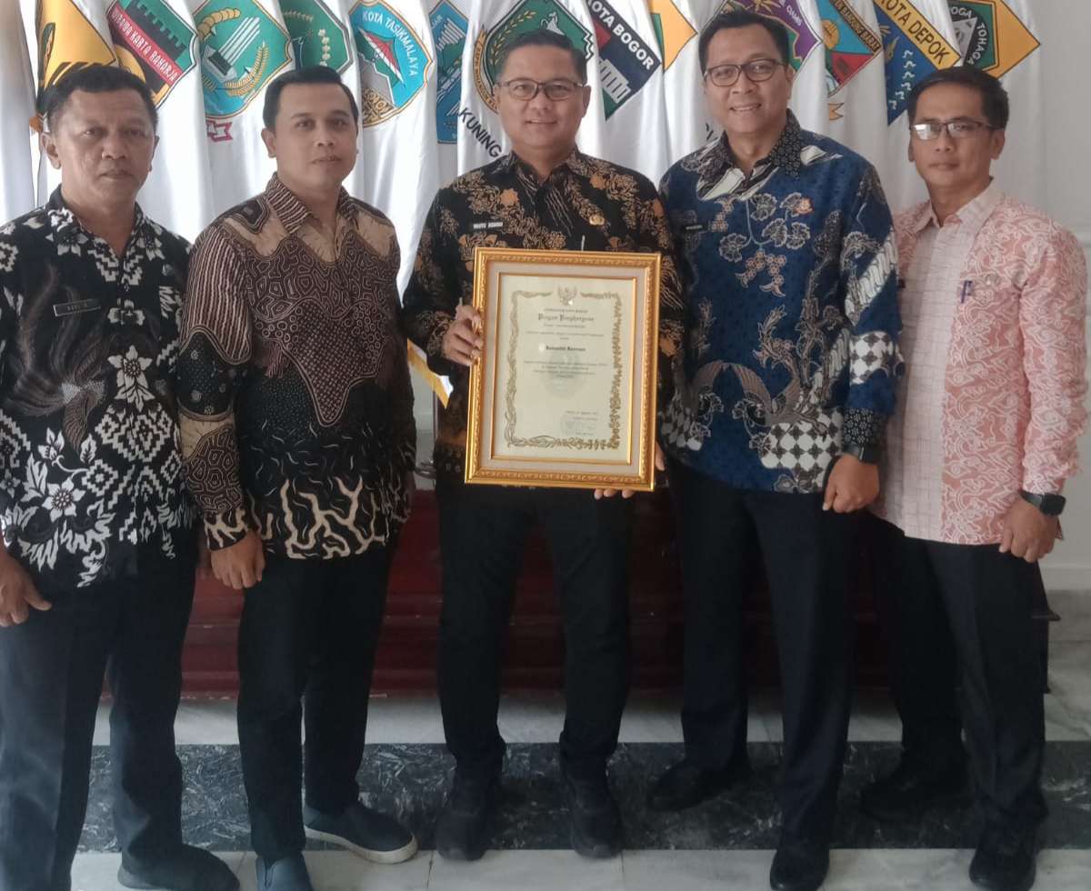 Penghargaan tersebut diserahkan oleh Wakil Gubernur Jawa Barat, Erwan Setiawan, kepada Pj Sekda Kabupaten Kuningan Dr Wahyu Hidayah, mewakili Bupati Kuningan Dr H Dian Rachmat Yanuar. Turut mendampingi, Kepala Bagian Hukum Setda Kuningan, Mahardika Rahman MH.