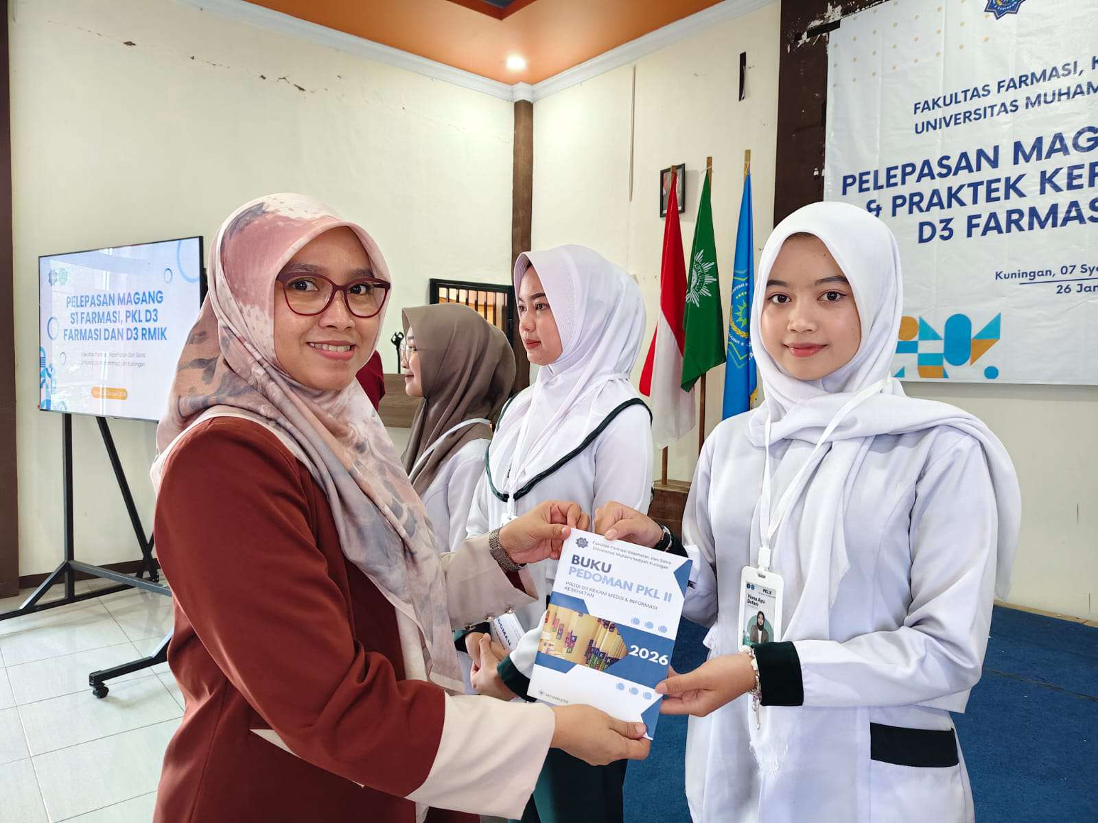 INILAHKUNINGAN– Universitas Muhammadiyah Kuningan (UM Kuningan) secara resmi melepas mahasiswa Program Studi S1 Farmasi serta D3 Farmasi dan D3 Rekam Medis dan Informasi Kesehatan (RMIK) untuk mengikuti kegiatan Magang dan Praktik Kerja Lapangan (PKL), Senin (26/1/2026). Kegiatan pelepasan berlangsung di Aula Kampus 2 UM Kuningan.
