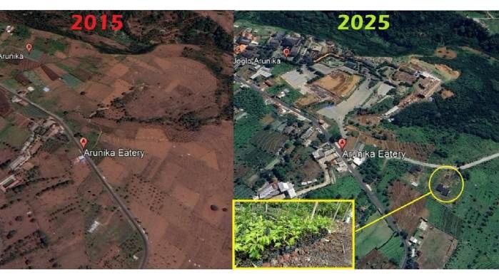 INILAHKUNINGAN– Transformasi lingkungan wisata Arunika bukan sekadar narasi. Perbandingan citra satelit di google, antara tahun 2015 dan 2025, satu