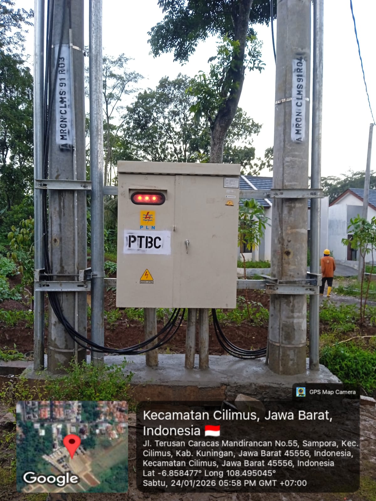 INILAHKUNINGAN – PLN UP3 Cirebon melalui PLN ULP Cilimus melaksanakan pemasangan trafo sisipan di Jalan Terusan Caracas–Mandirancan sebagai