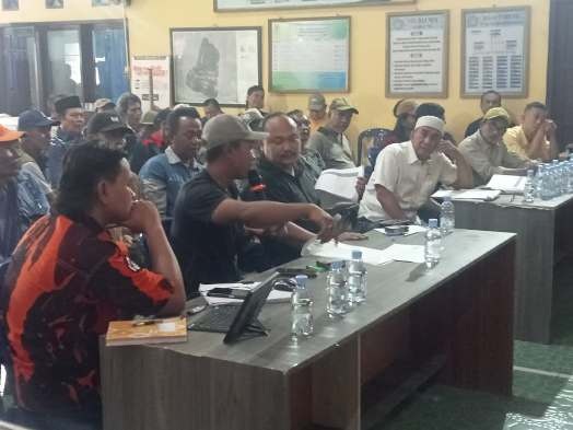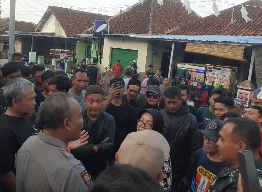 INILAHKUNINGAN- Suasana tegang terjadi di Balai Desa Kalimanggis Kulon, Cidahu, Kabupaten Kuningan, Selasa (2/12/2025). Ratusan warga menyambangi