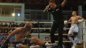 INILAHKUNINGAN – Petinju Kuningan, Fasial Fude, memukul Knockout atau KO, Hunbara, Petinju Majalengka di ronde awal, pada gelaran partai utama