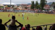 INILAHKUNINGAN- Babak perempat final Turnamen Sepak Bola Antar Kecamatan Bupati Kuningan Cup menyajikan laga penuh tensi tinggi, di Stadion Mashud
