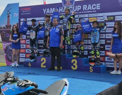 INILAHKUNINGAN- Tim Eskul Balap Motor SMK Pertiwi Kabupaten Kuningan, sukses berdiri bangga ditangga Juara II dan Juara 5 Kelas Beginer, dalam Event