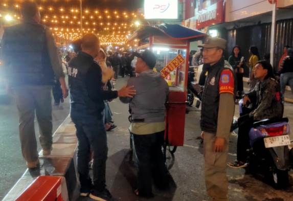 Tongkrongan gerobak dagangan nakal mereka di Jalan Pertokoan Siliwangi sebelah barat dan timur, juga Jalan Ahmad Yani depan Kantor Pos dan BRI Cabang Kuningan, kepergok aparat Satpol PP Kuningan, Semalam (10/6/2023), pukul 19.00 hingga 21.45.