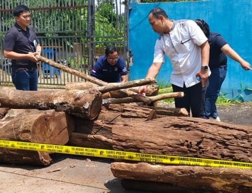 INILAHKUNINGAN- Babinsa Koramil 1514/Pancalang Sertu Joko bersama Polhut TNGC berhasil menyergap kendaraan truk yang membawa sekitar 20 batang kayu