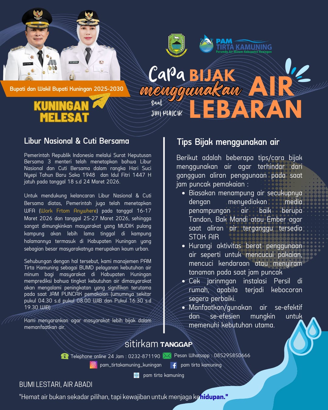 Terkait siapa yang akan ditunjuk sebagai Plh Sekda, Dian menyerahkan sepenuhnya kepada Pj Bupati. Siapapun yang akhirnya diberikan amanah menjabat Plh Sekda selepas dirinya cuti, dia sangat menghormatinya. Karena itu, Dian mengimbau kepada bapak, ibu, dan saudara untuk mengikuti arahan Pj Bupati, dan taat kepada pimpinan, sebab sejatinya birokrasi itu satu komando. Terimakasih Mohon Maaf sekali lagi dari hati yang paling dalam semoga berkenan. “Saya Dian Rachmat Yanuar mohon pamit,” ucapnya.