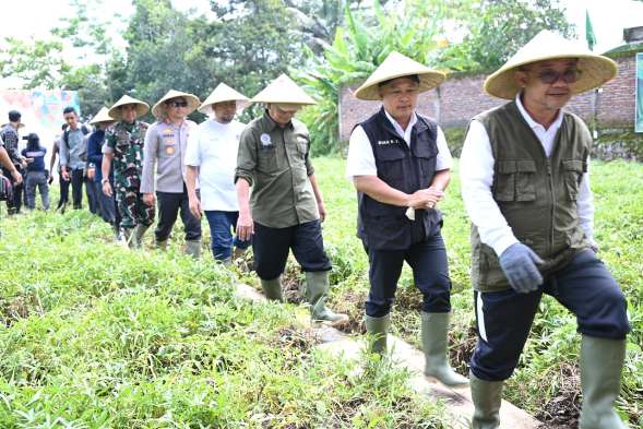 INILAHKUNINGAN- Menteri Pendidikan Dasar dan Menengah (Mendikdasmen) RI Abdul Mu’ti, bersama Bupati Kuningan Dr H Dian Rachmat Yanuar panen ubi