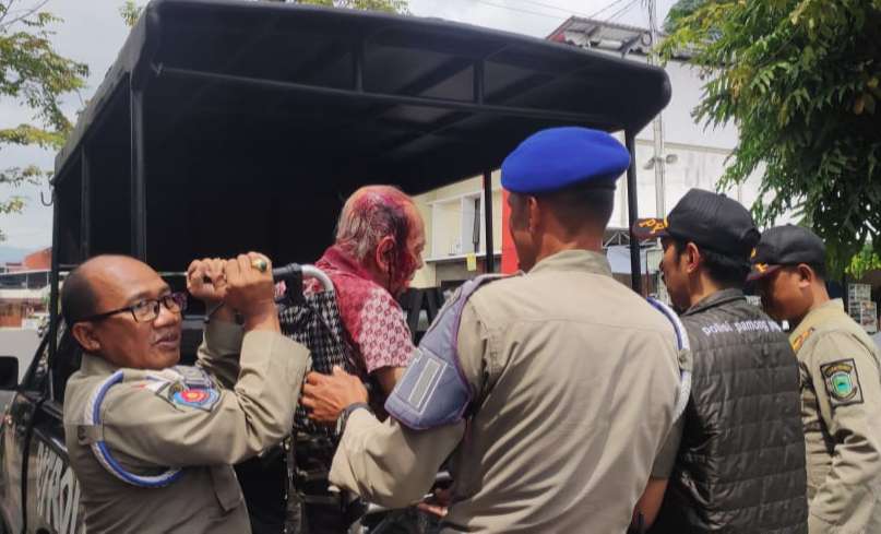 Akibatnya, kepala sang ayah sobek, terluka parah, berlumuran darah. Beruntung, aparat Satpol PP segera tiba di lokasi, mengamankan pelaku, dan membawa korban ke rumah sakit guna pengobatan. Insiden raja tega tersebut, terjadi tidak jauh dari rumah korban.