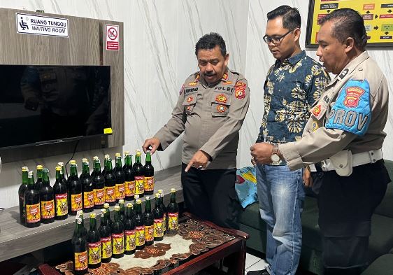 Selain mengamankan AD, pemilik toko, Ia juga mengamankan barang bukti 35 botol miras illegal jenis Anggur Gingseng dan Cap Orang Tua.