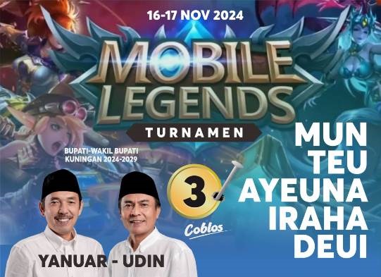 INILAHKUNINGAN- Guna mengakomodir minat kalangan muda, juga membina potensi cabang E-Sport, Paslon No Urut 3 Yanuar Prihatin-Udin Kusnedi dari PKB, PAN dan PBB , bakal menggulir Kompetisi Mobile Legends, selama 2 hari. Yaitu pada 16-17 November 2024.