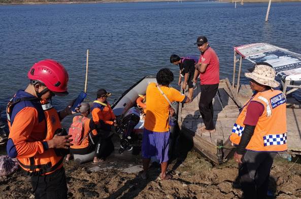 Tim penyelam Badan Penanggulangan Bencana Daerah (BPBD) Kuningan, dibantu TNI dan Polri masih melakukan aksi pencarian dengan menggunakan perahu. Tapi hingga pukul 16.30, korban belum kunjung ditemukan.