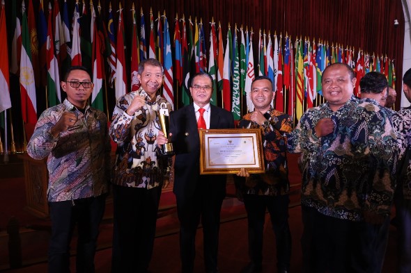 INILAHKUNINGAN- Layanan optimal keterbukaan informasi publik Pemkab Kuningan, diganjar penghargaan, menyusul diterima anugerah Kuningan sebagai Kabupaten Informatif. Penghargaan Komisi Informasi (KI) Provinsi Jawa Barat ini, diterima Pj Bupati Kuningan Dr Agus Toyib, di Gedung Merdeka, Bandung, Jumat *15/11/2024)